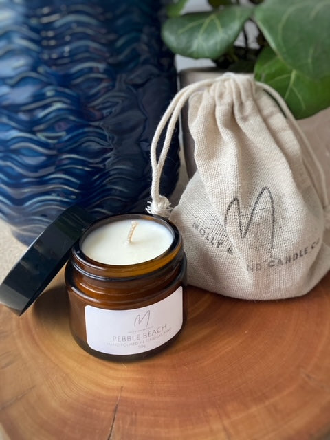 'Pebble Beach' is in honour of my hometown beach, I wasn't lucky enough to grow up with a sandy beach - our beach was entirely made up of pebbles. The scent in this candle provides a scent of coastal breeze with a gorgeous scent of wild freesia, lime and lavender.