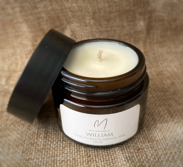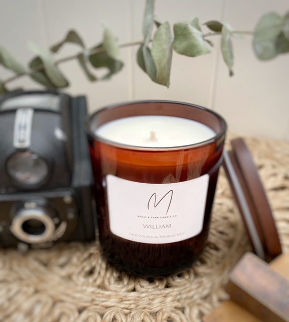 Our William scent is dedicated in memory to my very special Grandad. This masculine scent provides scents of rosemary, lemon and neroli with subtle undertones of cedarleaf and teak.
